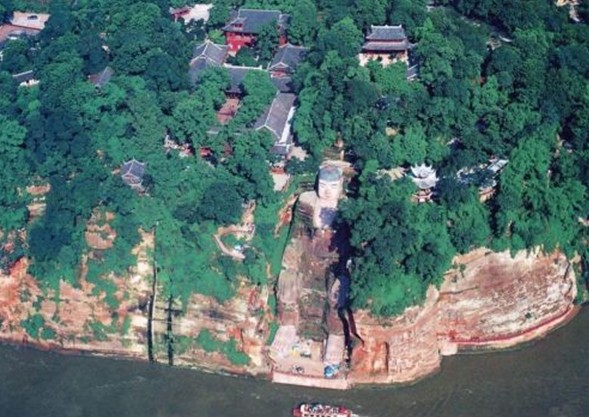 發源于川北大雪山的岷江,進入成都平原,來到樂山城下,已經是一條水面開闊的大江了。在這里,同波濤洶涌的大渡河,水流湍急的青衣江匯合。世界上最高的彌勒石刻大佛——樂山凌云大佛,位于凌云山上三江匯合得地方。