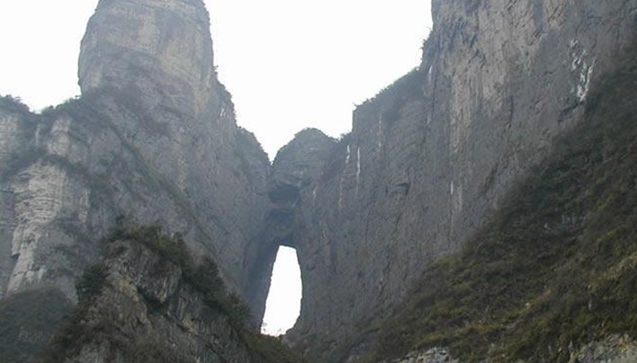 七、八十年前,站在張家界市區河邊的南碼頭,就可以清晰地看見雄奇壯觀的天門洞,而今天,在原地只能舉目見山不見洞了,欲觀望這一勝景,要到四公里之外的大庸橋公園。難道,天門洞真的在由北向西北方向悄然轉動?