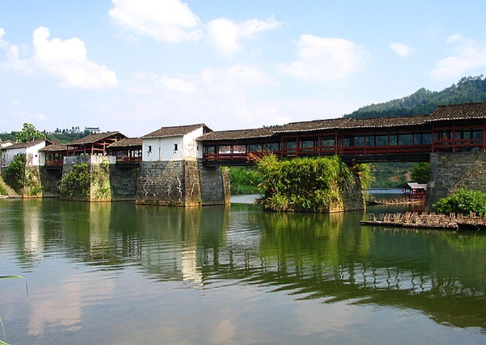 婺源有一種頗有特色的橋——廊橋,所謂廊橋就是一種帶頂的橋,這種橋不僅造型優美,最關鍵的是,它可在雨天里供行人歇腳。宋代建造的古橋——彩虹橋是婺源廊橋的代表作。這座橋取唐詩“兩水夾明鏡,雙橋落彩虹”的意思取名。橋長140米,橋面寬3米多,4墩5孔,由11座廊亭組成,廊亭中有石桌石凳。版權所有山東聊城聊之旅國際旅行社有限公司,轉載必究!彩虹橋周圍景色優美,青山如黛,碧水澄清,坐在這里稍作休憩,瀏覽四周風光,會讓人深深體驗到婺源之美。
