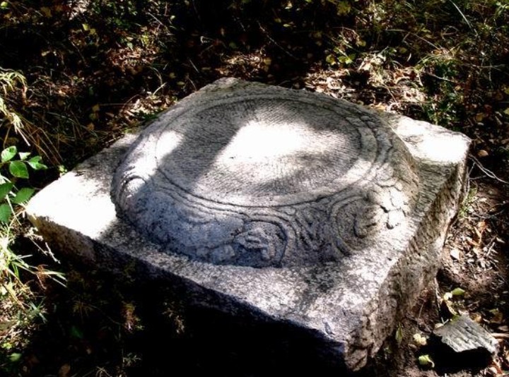 《遼史》記載,太祖陵“鑿山為殿”,殿南設“天膳堂”,以備四時之祭。《遼史•地理志》載,陵園外“東偏有圣蹤殿,立碑述太祖游獵之事,殿東有樓,立碑,以紀太祖創業之功”。立碑處還有大龜趺(碑座)一具,已無首,長2.96米,碑槽長1.10米,近年來于碑座處發現若干契丹文字殘片。