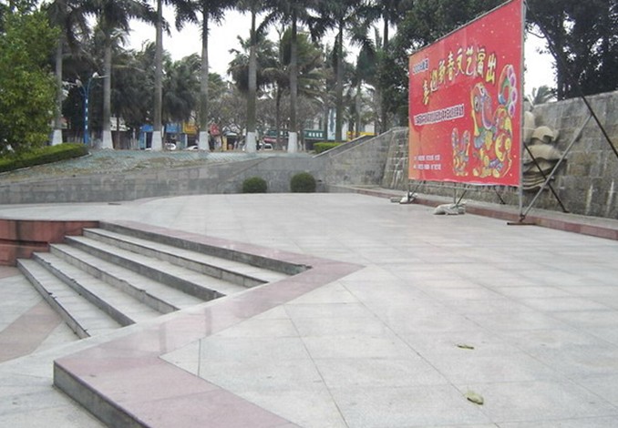 靠近北部灣中路的文化廣場(chǎng)區(qū)由林蔭廣場(chǎng)、露天表演廣場(chǎng)和展覽館三部分構(gòu)成。林蔭廣場(chǎng)綠化選擇具有南方特色闊葉喬木水石榕為主要樹(shù)種,這種樹(shù)根據(jù)長(zhǎng)勢(shì)可以修剪成方體或珠體形狀,形成規(guī)矩,整齊的廣場(chǎng)綠色景觀,樹(shù)下設(shè)置有簡(jiǎn)潔大方,別具熱帶風(fēng)情的“C”形木椅,同時(shí)還設(shè)計(jì)有造型活潑的閱報(bào)欄,露天表演廣場(chǎng)是利用原有地形建成的開(kāi)敞式的公共文化娛樂(lè)和休息場(chǎng)所,面積約2000平方米,依就原地形建有長(zhǎng)形的水幕墻、巨型浮雕“海之韻”、露天表演舞臺(tái)、音樂(lè)茶座、階梯級(jí)觀眾看臺(tái)、騎樓式店鋪、斜坡式花壇、殘疾人斜坡道等園林設(shè)施,創(chuàng)造了一個(gè)優(yōu)雅宜人、景觀獨(dú)特的室外環(huán)境;展覽館是利用原水廠蓄水池改造而成的頂面為球殼形的一座造型十分獨(dú)特的建筑,占地約500平方米,屬無(wú)梁磚拱結(jié)構(gòu),既保留了歷史建筑工藝,又可作為公共展覽館,豐富了廣場(chǎng)的文化內(nèi)容。