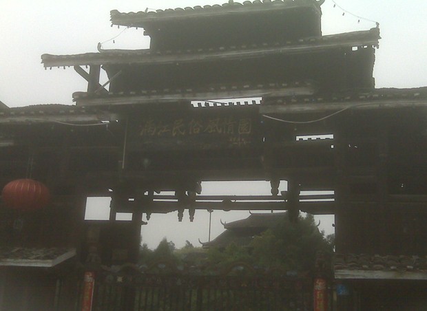 在大門(mén)正前有極富民俗色彩的圖騰柱群,刻畫(huà)出了自民族的原始圖騰,神秘富有美感。圖騰柱的北方有一個(gè)大廣場(chǎng),輪流演出各民族的特色節(jié)目:壯族的板鞋舞,苗族的蘆笙踩堂,侗族的多耶等還有斗雞、斗馬、上刀山、射駑等民族游樂(lè)活動(dòng)