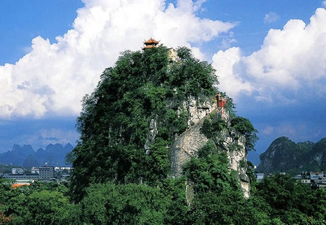 獨(dú)秀峰位于市中心以靖江王城內(nèi),孤峰突起,,陡峭高峻, 氣勢(shì)雄偉,素有“南天一柱”之稱。山東麓有南朝劉宋時(shí)文學(xué)家顏延元讀書巖,為桂林最古老的名人勝跡。顏曾寫下“未若獨(dú)秀者,峨峨郛吧間”的佳句,獨(dú)秀峰因此得名。假當(dāng)晨曦輝映或晚霞夕照,孤峰似披紫袍金衣,故又名紫舍山。