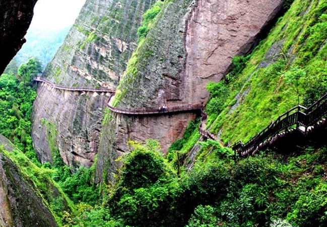 由丹霞地貌堆積、發育成的八角寨之高、天一巷之長、蠟燭峰之峭、紅華赤壁之絕、將軍石之俊、駱駝峰之優,加上蔥郁茂密的深林植被、九曲縈繞、清澈見底的夫夷江,構成丹霞、綠水、青山相互襯托的美輪美奐的自然畫卷,讓來崀山旅游的游客贊嘆不已、流連忘返。