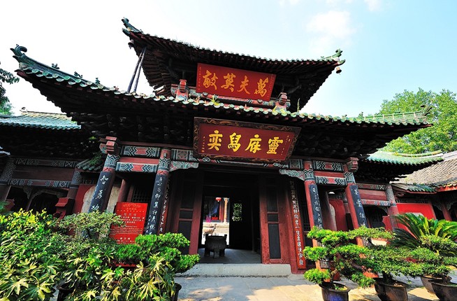 張飛廟是為紀念三國蜀將張翼德而建的廟宇,相傳剛直勇毅的張飛急于為義兄云長關羽報仇,被部將張達、范疆所害,擬將其首級獻給東吳孫權,行至云陽時得知吳蜀議和后,將頭顱拋入江中,有漁民夜得張飛托夢,到江中打撈張飛頭顱后意外撈到一罐金子,于是用此金在長江南岸飛鳳山麓建造了張飛廟。傳說終歸是傳說,據說張飛廟始建于蜀漢末年,后經宋、元、明、清歷代擴建,已有1700多年歷史。但張飛廟始建于何時?則無史志記載,僅在張飛廟助風閣內現存的一塊宋宣和年間的《宣和陳擬碑》為最早實物。英國商人阿奇波得*立德1879年游覽了張飛廟,其游記《扁舟過三峽》載:“廟宇建筑十分堅固,維修精良,裝飾華麗,三進大殿和一個兩層的亭子順著臨江一面延伸排列。廟的一側有一道美麗的石橋,從橋往上看,只見一條瀑布從一個陡峭的窄谷中飛奔而下,這是我所見過最完美的一幅東方美景。”老張飛廟面江背山,依山取勢,座巖臨江、山水園林與廟宇建筑渾然一體,相互襯托,廟外黃桷梯道、石橋澗流、深潭藤蘿、臨溪茅亭、峻巖古木等景場,秀美清幽,更有竹林掩映,曲徑通幽,獨具一格。由一組匠心獨運的古建筑群組成,版權所有山東聊城聊之旅國際旅行社有限公司,轉載必究!氣勢宏偉壯麗,主要建筑有七座,由正殿、旁殿、結義樓、望云軒、助風閣、杜鵑亭和得月亭組成,前五座建筑為紀念武將張飛而建,后兩座為紀念文人杜甫客居此廟而建,是難得的文武合廟。有“巴蜀勝境”之譽。1980年被定為省級重點文物保護單位,2001年被評為國家級重點文物保護單位。據說在老張飛廟前150米處的江中,還有一脊石,東西長200余米,寬10米的砂巖石梁,俗稱龍脊石,上刻有北宋元佑三年(1088年)以來170余字的石刻題記,上有“大清同治庚午,洪水至此”的150.35米水位線。清同治九年(1870年)的這場洪水將整個張飛廟淹沒,其后重建的張飛廟內還有記載重建過程和捐款人名單的石碑。是最珍貴的水文資料,而江中的龍脊石傳說每年正月初七龍脊現形。不過三峽大壩水位上升后,龍脊石不復存在變成龍潛石了。