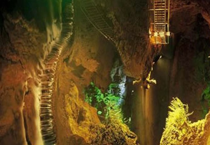 全長4.6公里,亞洲第一地下長河的水溶洞奇觀為景區(qū)主要景點(diǎn)。洞內(nèi)景觀保存完好,清澈見底的地下河終年不絕,水平如鏡。倒影似龍宮、仙境,亦真亦幻,真假難辨;落差達(dá)18米的四級(jí)地下瀑布構(gòu)成了雄偉奇麗的瀑布群,形成了洞內(nèi)“飛流直下三千尺,疑是銀河落九天”的人間絕景;游客可在地下河內(nèi)漂流,流速時(shí)快時(shí)慢,讓人既有驚險(xiǎn)刺激的感受又可悠閑自如欣賞地下奇觀美景。有張關(guān)“三絕”: 版權(quán)所有山東聊城聊之旅國際旅行社有限公司,轉(zhuǎn)載必究!夢(mèng)幻倒影、銀河飛瀑、地腹漂流。再輔以地面山林槽谷、田園風(fēng)光,構(gòu)成了難得的立體自然風(fēng)光;山寨、古戰(zhàn)場(chǎng)遺址、古樸的民風(fēng)、動(dòng)人的傳說、自然與人文巧相輝映;再加上長720米,落差達(dá)85 米的中國第一高空速滑和獨(dú)具特色的篝火晚會(huì),使游客流連忘返。