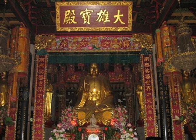 殿宇歷經宋元明清及近代先后達10多次大規模修建,現在整體建筑格局分中軸線和東西兩側三部分。中軸線上有照壁,山門外的照壁上嵌有康熙二十三年(公元1684年)郡人陳衍虞書的“梵天香界”石刻。中軸線上內分五進,首進為山門(金剛殿),二進天王殿,三進為主體建筑大雄寶殿,版權所有山東聊城聊之旅國際旅行社有限公司,轉載必究!四進為藏經樓,五進玉佛樓。東側以客堂、大悲殿、地藏閣、香積櫥(齋堂)、不俗精舍、祖堂、僧舍等一行為左屏;寺左翼的大悲殿在建,此處原為寺內的鐘樓、諸天閣、神農殿、關帝廟等建筑,建國初被占為市場、電影院,今已歸還;寺左翼的神農殿,最初為每遇農歷十月十五日神農氏誕辰,郡城各米商,聚集于此祭拜,并拿出各自經營所用的筒、斗等量器,憑眾檢驗,不準者給予校正。這種在寺里借助佛祖的尊嚴及護法神的震懾,提倡公平貿易的商業道德,的確是潮州商業的一大傳統及特色。西側以旅游服務部、僧舍、原方丈廳、觀音閣、嶺東佛學院、六祖堂、伽藍殿、諸天閣等一行為右藩。從天王殿至藏經樓,兩側各有東西縱長的廂廊連接,左右兩長廊曾在1915年被市場占用,并加建上蓋。