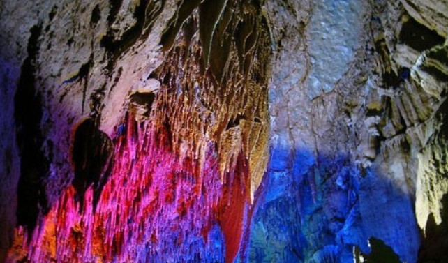 CaCO3碳酸鈣有這樣一種性質:當它遇到溶有CO2的水時就會變成可溶性的碳酸氫鈣[Ca(HCO3)2] CaCO3+CO2+H2O=Ca(HCO3)2 溶有碳酸氫鈣的水如果受熱或遇壓強突然變小時溶在水中的碳酸氫鈣就會分解,重新變成碳酸鈣沉積下來。同時放出二氧化碳。 Ca(HCO3)2 =CaCO3↓+CO2↑+H2O 在自然界中不斷發生上述反應于是就形成了溶洞中的各種景觀。世界上最大的溶洞是北美阿巴拉契亞山脈的猛犸洞,位于肯塔基州境內,洞深64km,所有的岔洞連起來的總長度達250km。洞里寬的地方象廣場,窄的地方象長廊,高的地方有30m高,整個洞平面上迂回曲折,版權所有山東聊城聊之旅國際旅行社有限公司,轉載必究!垂向上可分出三層。雨季,整個洞內都有流水,成為地下河流在坡折處河水跌落,形成瀑布;旱季,局部地區有水,成地下湖泊,可能還有積水很深的潭,不妨稱無底潭。