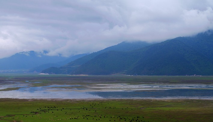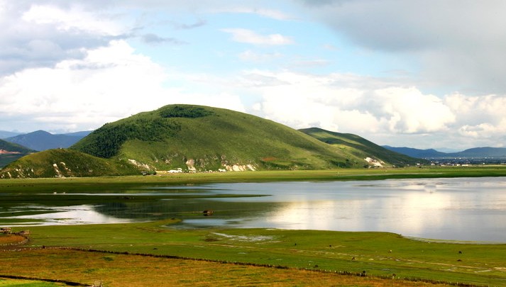 香格里拉納帕海位于中甸縣城西北部,距縣城8公里。保護(hù)區(qū)面積3125平方公里、海拔3266米、湖泊積水面積660平方公里。保護(hù)區(qū)地勢(shì)平坦,三面環(huán)山,冬春季節(jié),山嶺積雪。那曲河、奶子河等十余條河彎彎曲曲,流經(jīng)草源注入 納帕海。海西北面的辛苦雅拉雪女山麓有天然落水洞九處,洪水經(jīng)過(guò)溶洞,從尼西湯滿河排出、流入金沙江。每逢雨季、湖面增高、到旱季洪水排出、湖面縮小、大部分地區(qū)成為沼澤和草甸。