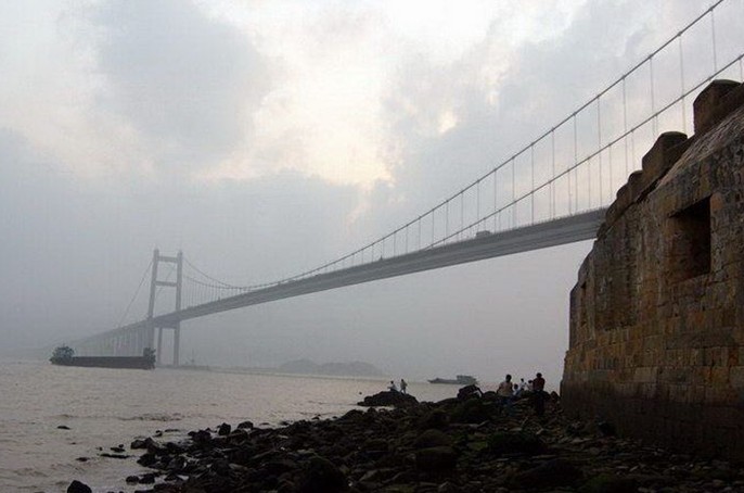 遠去了刀光劍影,散去了彌泛的硝煙。1997 年 7 月 1 日,在那浪涌潮飛、曾記載民族恥辱的江西上建成了橋長 15.6 公里象征國家開放、民族強盛的“中國第一大橋”――虎門大橋,是為了香港回歸而建。連接珠江口東西兩岸。泛舟珠江,只見大橋飛架,橫空出世, 如長虹臥波;信步大橋,則氣象萬千,波瀾不驚,云檣帆影,盡收眼底。
