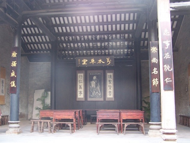 草堂,位于中山四路 長興里3號。是中國近代資產階級維新派創辦的著名學堂。原為邱氏書室,是廣東省邱氏子弟到省城應試的居住處。萬木草堂原為邱氏書室,建于清嘉慶九年(1804),為三間三進、兩天井、硬山頂的祠堂式建筑。碌灰筒瓦,兩邊保留有部分灰塑,青磚墻石腳,磚木結構,面闊三間15.8米,深三進35.3米,面積約為663平方米。