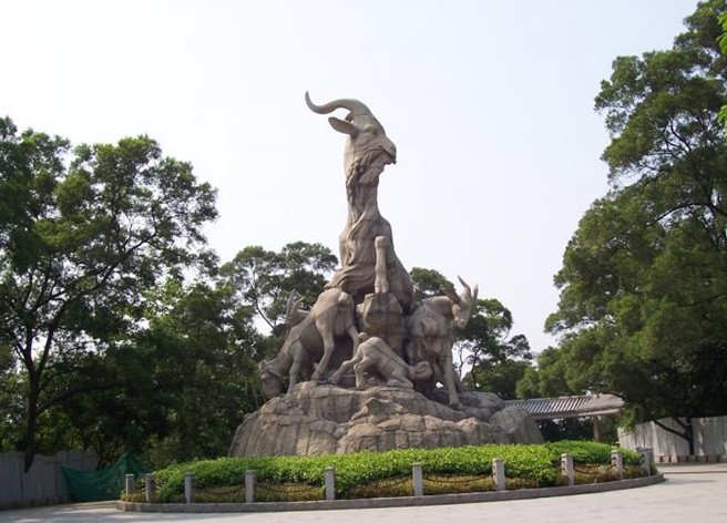 關于“五羊”、“五仙”傳說,前面已有介紹。“五羊銜谷,萃于楚庭”,是古代廣州人民向往美好生活而衍生出來的神話故事。這的確是一個美麗的傳說,對古代的百越人民來說,還有什么比“永無饑荒”更美好呢,五位仙人送給廣州人民的優良稻種,加上廣州地區陽光充足、氣候溫和、雨量充沛的良好自然條件,使廣州人民獲得大豐收,廣州也就成了嶺南最富庶的地方。五羊石像坐落越秀公園內,該石像有一美麗傳說:五位仙人身著五色衣服,騎五色羊,從南海飄來,降臨廣州,五只羊嘴里各銜一莖六穗的稻谷。仙人將稻穗送給當地居民,并祝福永無饑荒,言畢騰空而去,羊化為石。廣州亦得別稱“羊城”和“穗城”。根據古老的傳說1959年在越秀山建一座五羊塑作。這座五羊石雕,連基座高11米,共用130余塊花崗石雕刻而成,體積約53立方米,僅羊頭部的一塊石料就重達2噸多。五只羊大小不一,母羊昂首遠望,口銜谷穗,又似回眸微笑,探視人間。其余四羊,環繞其身,親密依偎,或嬉戲、或吃草,或吸乳。姿態各異,造型優美,情趣橫溢。據說當年雕像竣工時,有人提出既是五仙騎的羊,怎會還有在吸奶的乳羊呢?其實仙人五羊都是想像出來的神話,既是仙羊,無論大小,自有仙風道骨,佛法無邊。雕塑家們發揮其超群的想象力,匠心獨具。40多年來,五羊石雕被譽為廣州城徽,版權所有山東聊城聊之旅國際旅行社有限公司,轉載必究!為越秀公園增色不少。五羊的傳說也廣為流傳,海內外游客到此浮想聯翩,流連忘返,紛紛攝影留念。