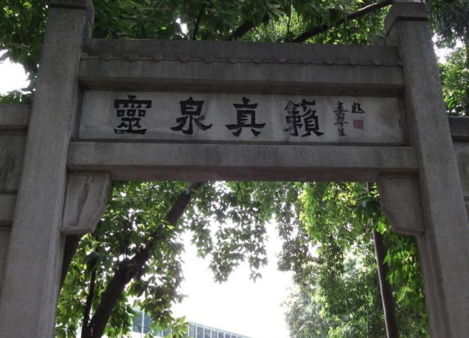 “古之楚庭”四字是以隸體字刻于石牌坊上。它是清代建造的。“楚庭”是人們所知的廣州最早使用的名字在明初朱亮祖構建五層樓稍后。都指揮花英在越井崗建造了玉山樓和觀音閣。玉山樓久已不存,觀音閣亦早已廢圮。現越井崗上的“佛山”石牌坊一帶就是觀音閣故址。