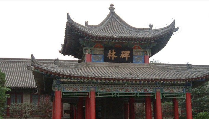 碑林博物館位于西安市文昌門內三學街15號,原為陜西省博物館,建于1944年,它是在具有900多年歷史的“西安碑林”基礎上,利用西安孔廟古建筑群擴建而成的一座以收藏、研究和陳列歷代碑石、墓志及時刻造像為主的藝術博物館。館區由孔廟、碑林、石刻藝術室三部分組成,現有館藏文物11000余件,11個展室,陳列面積4900平方米。博物館本身即為孔廟舊址,其建置可追溯到北宋末年。照壁、牌坊、泮池、欞星門、華表、戟門、碑亭、兩廡等明清建筑保存至今,并遵循著孔廟固有的建筑格局,組成了一個綠樹掩映、古樸典雅的庭院式建筑群。