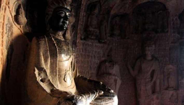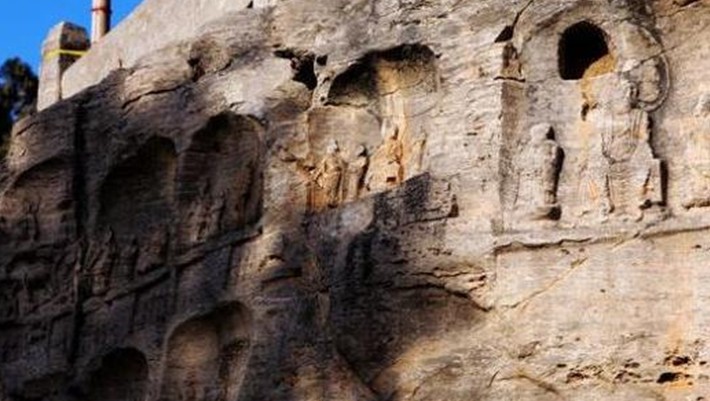 又稱萬佛寺、石空寺、千佛洞等。位于延安市黃陵縣西四十公里處的雙龍鎮峪村西,石窟開鑿于半山石崖間。此窟窟檐為陜西石窟中保留完好的原物,是研究宋代建筑的珍貴資料。石窟平面呈“凸”形,坐西向東,窟口為方形,寬2.4米,深2.6米,有佛像60余尊。窟口左右有佛龕各一個,以二園柱與洞口隔成三間,成檐廊。上有二層斗拱。這是宋代的仿建筑雕鑿,極為壯麗、精巧。中間是入口,走廊兩壁浮雕觀音菩薩像。石窟內高5.3米,寬9.3米,深12米。正中為佛龕,高3.38米,寬5.9米,深4.73米,內有大佛坐像12尊。中央坐釋迦牟尼,兩邊站立文殊、普賢二菩薩和迦葉、阿難兩弟子。窟項正中雕有千手千眼觀音一尊。窟內東西兩壁雕有高2.8米的立佛九尊,其中東壁有姿態優美的赤足持碗雕像。后壁有五百羅漢和一百徒從脬雕像,場面宏大,氣勢恢宏,版權所有山東聊城聊之旅國際旅行社有限公司,轉載必究!并間以佛說法圖、磐涅圖。