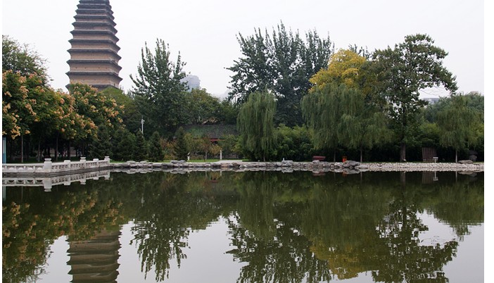 西安博物院建設過程中,一方面對原有保護區的基礎設施以及園林綠化進行了全面的改造,另一方面在原有占地面積的基礎上沿小雁塔、薦福寺的中軸線向東西兩側進行了擴展,改善了小雁塔與薦福寺的周邊環境。在擴建的區域內,增加了人工湖面以及園林綠化景觀,使歷史名勝與城市公園融為一體,成為一處集文物鑒賞、旅游觀光、休閑娛樂為一身,多功能的城市景觀區域。