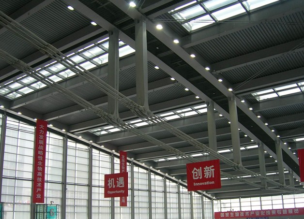 ◆展廳亮度正常照明、事故照明間隔分布,以配合自然采光天窗手動調節;照度為:300lx-400lx(勒克司lx)