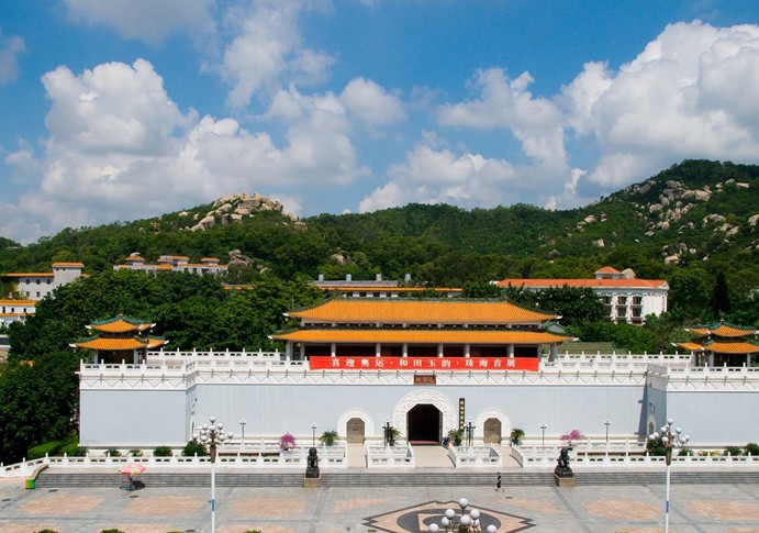 珠海市博物館(九洲城)坐落在珠海市吉大景山路,位于石景山旅游中心與珠海賓館之間,地處珠海旅游商貿、金融及政治、文化中心,是珠海的標志性建筑之一。它以城樓、殿堂、幽廊、涼亭、水榭、園池等中國傳統建筑構成古典園林風貌建筑群。