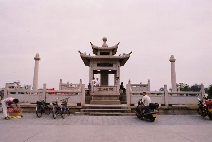祭鱷臺原為古鱷渡口。相傳唐代韓愈刺潮時(shí)曾于此處設(shè)壇祭鱷,撰《鱷魚文》,故名。臺前大江,于秋高云淡之際,一面風(fēng)可駛?cè)娣蚨Q“鱷渡秋風(fēng)”,列為“潮州八景”之一。1987年,在原址修建鱷渡秋風(fēng)亭和祭鱷臺。鱷渡秋風(fēng)亭為金石結(jié)構(gòu),四柱四角雙重檐,分兩級層臺,上亭下臺,四周有石欄環(huán)護(hù)回廊欄桿,端莊且典雅。
