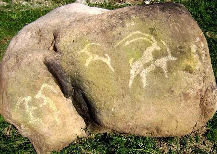 遺址中發現的石刀和石斧說明人類學會用石頭制作生產工具便進入了石器時代。最初人們只能制作打制石器,當人類掌握了磨制石器的技術以后,人類社會就由舊石器時代進入新石器時代。其中:石刀為石質,黑色,橢圓形。長11.5厘米,寬5.8厘米。磨制而成。四邊圓角,器形較規整。刃面比較粗糙,刃部鋒利,屬青銅時代諾木洪文化。石斧為石質,灰色,長方形。長23.5厘米,寬12.5厘米。兩側邊有對稱的凹口三對,保留打擊痕跡,磨制,斜刃,屬青銅時代諾木洪文化。