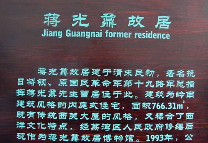 “廣東省文物保護(hù)單位、愛(ài)國(guó)名將蔣光鼐故居,作為旅游景點(diǎn),因配套設(shè)施不足,陳列內(nèi)容不夠豐富,展示形式較為落后,且年久失修一。現(xiàn)在每個(gè)星期難覓一參觀者,即便是節(jié)假日,也不例外。”對(duì)此,蔣光鼐之子蔣建國(guó)先生回鄉(xiāng)實(shí)地察看時(shí),感到非常痛心。