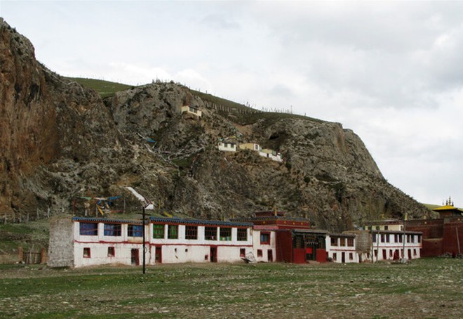 吉然寺,全稱吉然菩提洲,位于離玉樹州府所在地結古鎮25公里的巴塘鄉境內的卓瑪巴雜崖根,因此又名卓瑪巴雜寺,海拔3700多米。吉然寺是吉然家族在此世襲傳承住持弘法而得名。“吉然”是家族姓氏,自稱是吐蕃四大原始氏族之一,早期信奉苯教,到8世紀改宗信仰藏傳佛教寧瑪派。