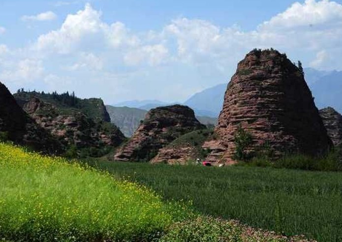坎布拉國家地質公園,在地質方位上處于青藏高原和黃土高原交會區域。公園內涵蓋“丹霞”峰林地貌景觀、新生界沉積環境和沉積構造類型以及3800萬年以來的地質生態環境演化遺跡??膊祭は嫉孛灿杉t色砂礫巖構成,巖體表面丹紅如霞。奇峰、方山、洞穴、峭壁為主要地貌特征。山體如柱如塔、似壁似堡、似人如獸,形態各異。各種造型栩栩如生,形態千奇百怪,有鬼斧神工之妙??膊祭貐^有十八座奇山險峰,南崇峰、宮保峰、德杰峰、內寶宗峰、大雁峰、尼姑峰、山羊峰、牦牛峰等,這些山峰的命名大都帶有濃厚的宗教色彩。十八座山峰中,阿瓊南宗和內寶宗最為聞名。德杰峰在陽光照耀下,版權所有山東聊城聊之旅國際旅行社有限公司,轉載必究!遠遠望去,猶如拉薩布達拉官之盛景;位于德洪村附近的“仙女聚會”,是由數十個拔地而起,形態各異的圓錐形山體組成,上面有奇花異草點綴,四周地形隆起,猶如“仙女”們在翩翩起舞,景色奇特、秀美,如入仙境,讓人嘆為觀止;強起崗位于風景區的西部,是由大小數十座峭壁如削的塔狀山峰組成,在最佳景點觀賞,似群山起舞,林海茫茫,晴嵐雨雪,氣象萬千,給人以氣勢磅礴,蔚為壯觀之感。阿瓊南宗四周為陡巖峭壁,只有一條石階小徑通往峰頂,這條小徑大部分是在懸崖上人工開鑿而成的。峰頂有一座古剎,數間小石窟,窟內陳列佛像,終年香火不斷。內寶宗是一個四四方方的獨立山峰,上有奇花異草,峰頂有天池、泉水。