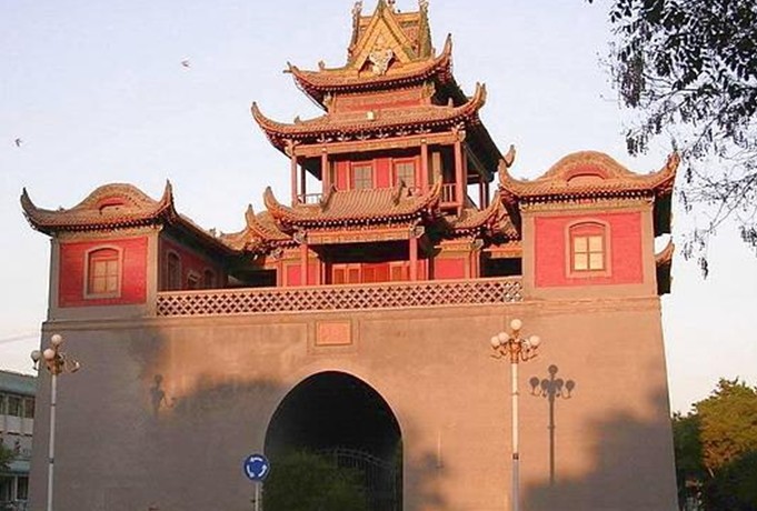 鐘鼓樓又稱“十字鼓樓”、“四鼓樓”,俗稱“鼓樓”。樓總高36米,占地576平方米。由臺基、樓閣、角坊組成。版權所有山東聊城聊之旅國際旅行社有限公司,轉載必究!臺基呈正方形,邊長24米,高8.5米,用磚石砌筑。臺基四面辟有寬5米的券頂門洞,中通十字,與解放東西街、鼓樓南北街相通。四面洞額有石刻題字,東曰“迎恩”,南曰“來薰”,西曰“挹爽”,北曰“拱極”。東面門洞兩側各辟一券門,南券門額上題為“坤闔”,內為一耳室;北券門額上題為“ 乾辟”。從北券門沿券砌暗道石階可登至臺基之上。臺基中心建有十字歇山頂重檐三層樓閣,每層樓閣四面圍以環廊。登臨閣上,扶欄眺望,銀川景色,盡收眼底。樓閣頂脊飾以龍首,中置連珠,呈二龍戲珠之勢,別具情趣。仰觀鐘鼓樓,挑檐飛脊,高聳秀麗,造型生動,頗為壯觀。