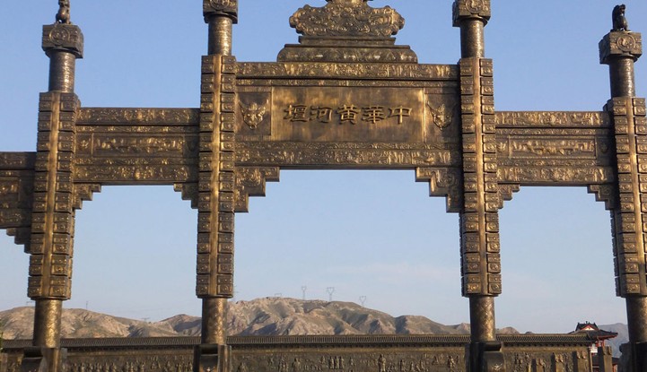 中華黃河壇牌樓是黃河壇的正門。這個(gè)15.8米高,45米跨度的10柱9門特大型牌樓,是我國(guó)目前最大的青銅牌樓,歷史上也聞所未聞,顯示了黃河文化博大精深的恢宏氣魄。