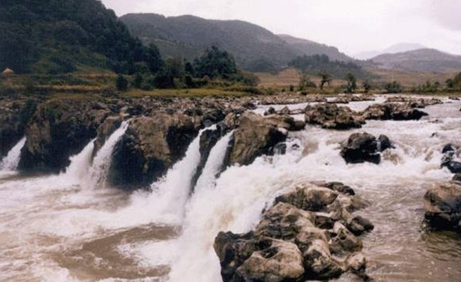 猴橋是史迪威公路跨越檳榔江鐵索橋的傈僳族集居村,原名猴子橋。因古代系一條藤索懸垂兩岸之間,旁牽兩條手扶藤索,再以細藤纏繞,以供行人踩獨繩過江,手足并用如猴攀緣,便以橋而命地名,檳榔江進入猴橋地域后,先以陡峻之勢,自奔現(xiàn)在中緬公路鋼索吊橋,過橋之后漸趨平緩,而向下流瀉去,又再進人人跡罕至的崇山峻嶺之中。在這段檳榔江的江心江岸,成百上千的巨石或如牛躺臥,或如獸蹲伏,夏日洪水滾滾而過,便激起掀天的怒濤,聲若雷霆。而冬春時節(jié)江水潺潺,清可見底。