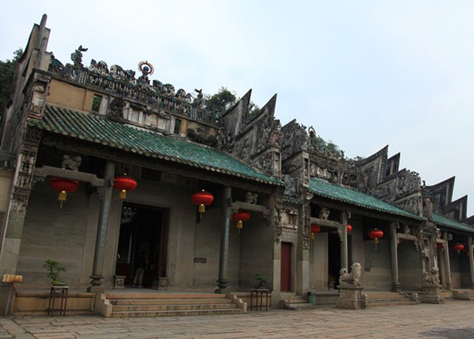 祖廟由三座廟宇并列而成,武當廟(也稱北帝廟)作為主體廟居中,左為普陀廟(也稱觀音廟),右為文昌廟(也稱文昌閣),三廟分別供奉著北方真武玄天上帝、觀世音菩薩、文昌帝君的神像。三廟的建筑均為二進院落式布局,采用磚木結構。墻體全是水磨青磚對縫砌就,屋面為碧綠色的琉璃瓦,出檐施以木雕蓮花托,四角翹飛,屋脊上鑲有雙龍戲珠及瓷制人物,栩栩如生,"藝術裙"上刻有歷史典故、神話傳說、人物花卉、詩書字畫。祖廟現存的磚雕、陶塑、石刻、灰塑等,以其工藝精湛、造型獨特、色彩斑斕,展現出祖輩們的聰明才智和濃厚的民族特色,使這座古老的廟宇真正成為巧奪天工的藝術殿堂,讓人賞心悅目,流連忘返。