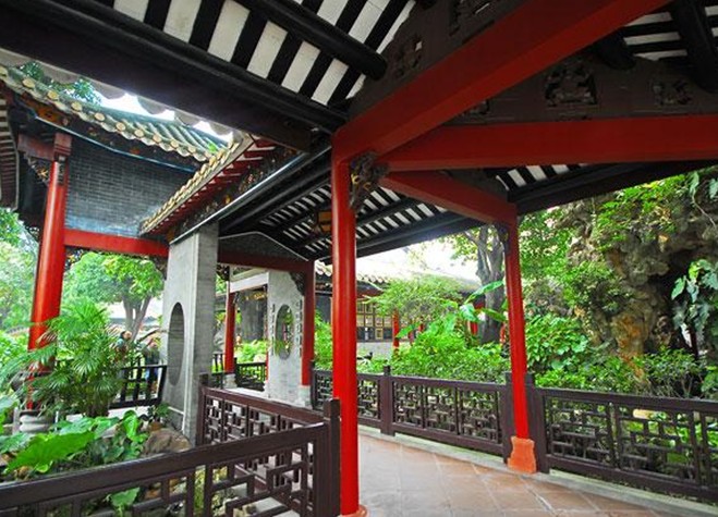 在花木配置方面,園內花卉果木逾百種,除了嶺南園林常用的果樹,還栽種了蘇杭園林特有的紫竹、枸骨、紫藤、五針松、金錢松、七瓜楓、羽毛楓等,并從山東等地刻意搜集了龍順棗、龍瓜槐等北京樹種,品種豐富,多姿多彩,其中銀杏、沙柳、紫藤、龍眼、水松等古木樹齡已有百年有余,一年四季,蔥蘢滿目,與古色古香之樓閣亭榭交相掩映,徜徉其間,步移景換,令人流連忘返。