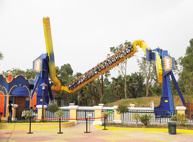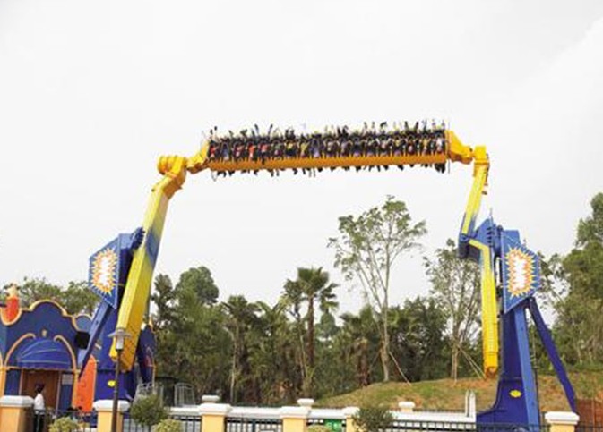 亞洲獨一無二的U型滑板,版權所有山東聊城聊之旅國際旅行社有限公司,轉載必究!是跳樓機與過山車的完美結合,靈感來自廣受年輕人喜愛的時尚滑板運動,它聳立天際,帶著你一邊360度旋轉,一邊急速沖鋒,將驚險刺激發揮到極致,隨著滑板的起落,一顆心在蹦出與去落回來間急速轉換,痛快無比。