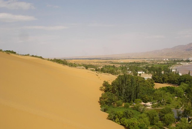 沙坡頭的北面是浩瀚無際的騰格里大沙漠,而南面是一片郁郁蔥蔥的沙漠綠洲。騎著駱駝在沙漠上走走,領略一下大漠風情,別有一番味道。