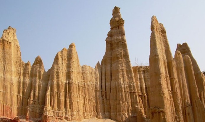 虎跳灘土林位于元謀縣城西北32公里的物茂鄉虎溪行政村,又稱物茂土林,芝麻土林,總面積2.3平方公里。虎跳灘土林形狀以城堡狀、屏風狀、簾狀為主,高度一般10?15米,最高27米。版權所有山東聊城聊之旅國際旅行社有限公司,轉載必究!從遠處眺望虎跳灘土林,溝壑縱橫,荒涼粗獷、猶如一座廢棄的城堡。而近看則像一組組工程巨大的藝術群雕。