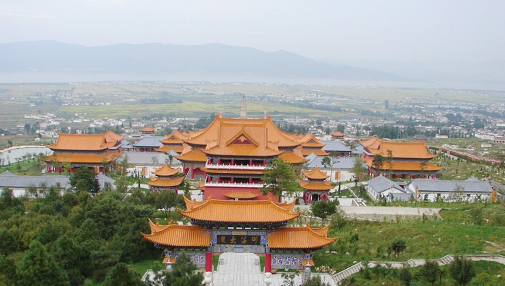 2005年4月崇圣寺大規模恢復重建竣工,結束了崇圣寺三塔近百年來“有塔無寺”的歷史,形成了塔寺輝映的美景。崇圣寺的規劃布局以保護三塔為核心,源于歷史,超越歷史,借鑒了國內外著名寺廟布局的特點,集唐、宋、元、明、清歷代建筑特色之精華,按主次三軸線,八臺九進十一層次進行規劃建設。整個仿古建筑群落占地600畝,建筑面積20080平方米,總投資1.82億元。主軸線上依次建有大鵬金翅鳥廣場、山門、護法殿、彌勒殿、十一面觀音殿、大雄寶殿、阿嵯耶觀音閣、山海大觀石牌坊、望海樓。版權所有山東聊城聊之旅國際旅行社有限公司,轉載必究!中軸線兩旁和次軸線上建有法物流通處、方丈堂、客堂、齋堂、羅漢堂、千佛廓、祖師殿、佛教研究院。寺內塑像以《張勝溫畫卷》、明代梨廣修所塑的“五百羅漢像”和三塔出土文物為藍本創作而成,融合了“禪宗”、“密宗”的特點,形成獨特的大理雕像風格。寺內617尊(件)佛像、法器均用青銅澆鑄而成,用銅千余噸,其中599尊(件)為貼金、彩繪,創全國之最。