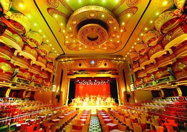 麗江明珠歌劇院 位于廣州市番禺區的麗江明珠歌劇院是一座超級豪華的大型演播廳,建筑面積約23000平方米,其建筑結構之復雜、功能之多樣、演出埸地之富麗堂皇,不僅在廣州是第一座,在國內乃至東南亞都是罕見的。由于歌劇院內的建筑結構是混凝土為主,基本無吸聲效果。雖然局部裝飾材料有吸聲功能,但它只是針對高頻段。混響時間還是偏長,根本就不能滿足歌劇院的特殊要求,過長的混響時間會使音樂模糊不清,甚至變成噪音,直接影響觀眾欣賞高雅藝術的雅興。歌劇院的聲學設計要求滿足演唱同樂隊演奏時唱詞的清晰度和聲音的豐滿度兩方面的問題。版權所有山東聊城聊之旅國際旅行社有限公司,轉載必究!由于劇院的飾面設計已定,不能改變原設計外型。故此在建聲設計領域里,它屬于比較難以處理的場所。