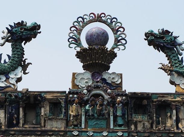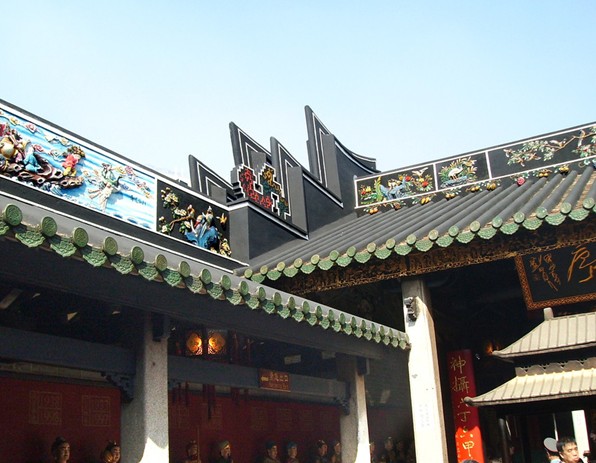 廟中的建筑雕飾,集丹青、木刻、磚雕、灰雕等各種藝術(shù)于一體,其雕飾物形象生動,栩栩如生,集中了嶺南古建筑藝術(shù)的精華,被譽(yù)為“桂殿蘭宮”。同時,整座廟宇造型各異,有方形、八角形,也有覆盆狀的。柱子有石柱、木柱,柱的截面有方形、八角形、圓形,也有轉(zhuǎn)角柱。