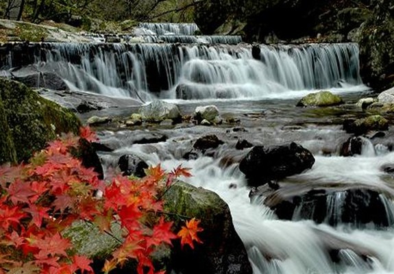紅河谷位于陜西寶雞眉縣,由靜林寺、顯洞寺、玉皇閣、觀音崖等宗教文化古跡組成。園內山勢險峻,石峽深邃,幽谷含秀,飛瀑深潭,珠飛玉濺,景觀多變。太公石船古樸悠遠,雙洞水簾神秘莫測,群仙聚首如生靈顯現。