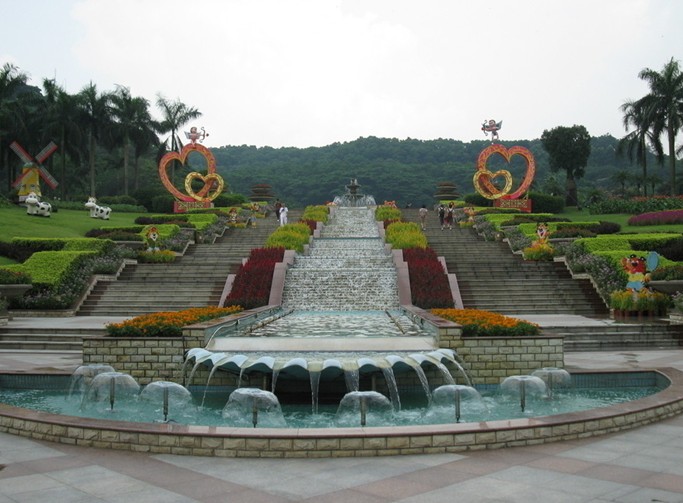 途中景點: 正門 > 飛瀑流彩 > 滟湖 > 花鐘 > 玻璃溫室 > 姑嫂墳 > 巖石園 > 玫瑰園 > 花溪流香 > 羅馬柱廊 > 山頂觀光廊 > 瑞典小木屋 > 醉華苑 > 誼園 > 休息長廊
