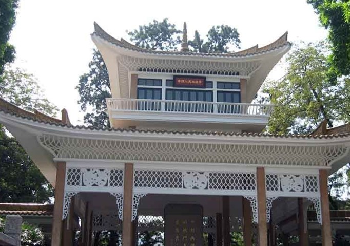 中朝人民血誼亭位于廣州起義烈士陵園內(nèi)東面,與中蘇人民血誼亭相對。建于1964年,坐南朝北。建筑平面呈“凹”字形,占地面積約3000平方米。黃色琉璃瓦,鋼筋混凝土結(jié)構(gòu)。主亭面闊三間12.85米,進深三間13.06米,高二層,四角攢尖頂。上懸“中朝人民血誼亭”匾額。兩側(cè)各有總長為33.7米的曲尺型長廊,兩廊各連接面闊6米,進深5.5米的卷棚歇山頂副亭,平面呈方形。中國傳統(tǒng)形式的建筑基座,帶有朝鮮民族風(fēng)格的屋脊和檐口裝飾為金達萊花和木棉花結(jié)合的圖案。亭前是水池,小橋橫跨其中。亭中心矗立著高大的花崗巖石紀(jì)念碑,碑座高0.96米、碑身高 4.3米、闊2.6米,上嵌紅棉圖案。紀(jì)念碑正面刻“中朝兩國人民的戰(zhàn)斗友誼萬古長青”, 版權(quán)所有山東聊城聊之旅國際旅行社有限公司,轉(zhuǎn)載必究!落款為“葉劍英”,題于“1964年十月一日”。背面鐫刻著著名書法家吳子復(fù)書寫的碑文,對在廣州起義中犧牲的朝鮮青年的事跡作了簡明的介紹。