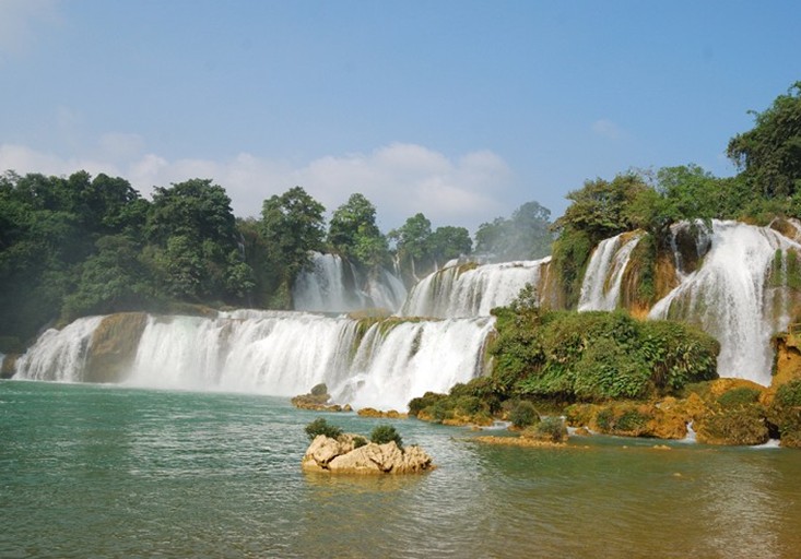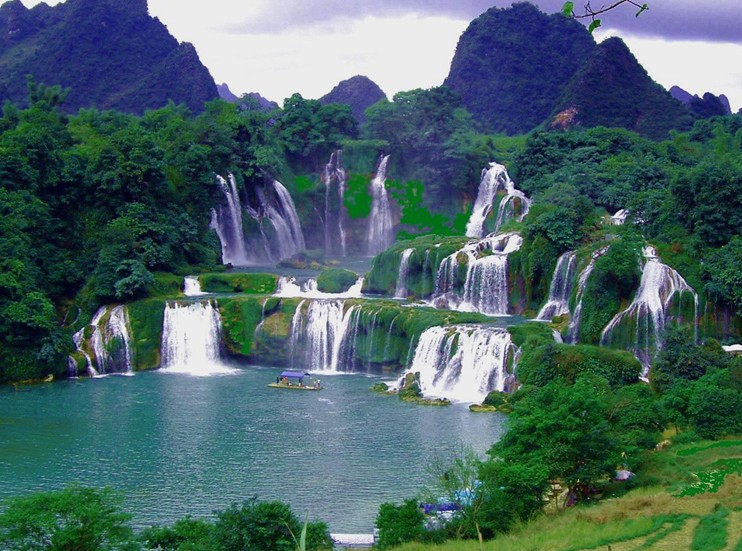 德天大瀑布橫跨中國、越南兩個國家,是亞洲第一、世界第二大的跨國瀑布。它起源于廣西靖西縣歸春河,終年有水,流入越南又流回廣西,經過大新縣德天村處遇斷崖跌落而成瀑布。