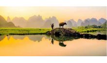 這里一年四季景色各異,雄奇瑰麗,變幻多姿,碧水長流,永不涸歇。春日,紅棉怒放,燦若云霞;夏臨,青峰浴水,花木繁茂;秋至,金風送爽,遍地金黃;冬來,群峰峭拔,山色空濛。無論陰晴云霧,季節交替,總是各具情態。五百里畫廊更是一路展開一幅又一幅寧靜抒情的南國風情畫卷。山巒從翠,奇峰錯列,輕紗繚繞,霞落云飛,山影平湖,茂林翠竹,花草掩映,百鳥低徊,綠水梯田,民居水車,小橋流水,耕夫荷鋤,村童在小河中嬉水,竹筏在秀水中穿行……這些如畫美景又豈是簡言陋語能描述、丹青妙手所能繪的呢?來吧,來德天,讓我們拋開一切煩囂,融入這大自然的懷抱!