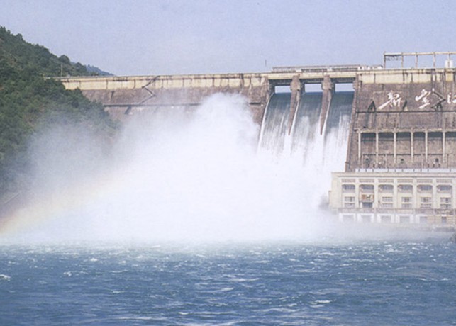 新豐江水庫大壩距河源市區(qū)6公里,為混凝土結(jié)構(gòu),高124米,壩頂寬為5米,長度440米,是世界上第一座經(jīng)受六級地震考驗的超百米高混凝土大壩。溢洪段設(shè)有3孔。1997年7月11日至14日、8月9日至16日,大壩兩次開閘泄洪。泄洪時,湖水從閘奔瀉而出,伴隨著雷鳴般的呼嘯聲,卷起千堆雪,仿似一幅蛟龍鬧海圖,十分壯觀。