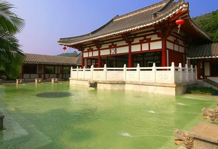 龍源溫泉度假城位于擁有“溫泉之都”美譽(yù)的河源斷裂地帶的中段,背靠由珍貴的水晶石構(gòu)成的“水晶山”,溫泉水從地下100多米深處透過古老的水晶巖層涌出,水質(zhì)更具靈性,富含40多種礦物質(zhì),硅酸、鋰、鍶、鋅、二氧化碳等珍貴地?zé)岬V泉水。龍源溫泉度假城擁有13 個純天然泉眼,勘測日流量近萬噸,溫泉水資源十分豐富,最高溫度68℃,具有良好的增強(qiáng)免疫力,活化細(xì)胞,養(yǎng)顏瘦身等保健療效。