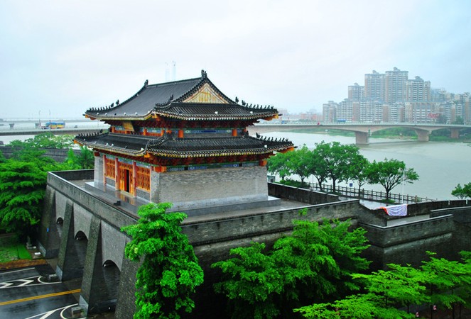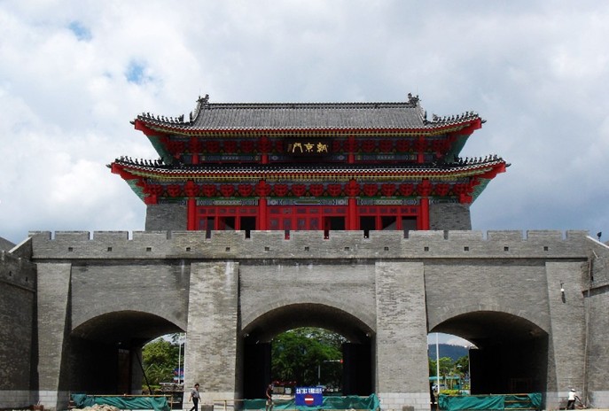 朝京門(mén)是具有擋水百年洪水功能的仿古城墻,將旱閘建設(shè)成為仿古城樓,城樓的城門(mén)內(nèi)安裝人字形閘門(mén),平時(shí)閘門(mén)敞開(kāi),作為交通通道,當(dāng)汛期需防洪擋水時(shí)便關(guān)閉閘門(mén)。該工程總長(zhǎng)352米,其中城樓面積1006平方米,設(shè)有3孔拱形門(mén)洞,門(mén)洞寬分別為中孔8.1米,邊孔7.2米,城樓高21.865米,版權(quán)所有山東聊城聊之旅國(guó)際旅行社有限公司,轉(zhuǎn)載必究!工程總投資約1600萬(wàn)元。惠州原老城墻為明代古城墻,是惠州遺留下來(lái)的重要?dú)v史文物。歷經(jīng)六百多年的風(fēng)雨滄桑,作為惠州大堤南堤的一部分,老城墻已不能滿足防御百年一遇洪水的標(biāo)準(zhǔn),亟待加固。朝京門(mén)城樓和城墻工程是惠州大堤南堤安全加固工程的其中一段,也是該市北門(mén)公園的重要組成部分。惠州大堤南堤安全加固工程于1998年經(jīng)省發(fā)展改革委員會(huì)批準(zhǔn)立項(xiàng),并于當(dāng)年開(kāi)工建設(shè),加固堤圍全長(zhǎng)22.61公里。