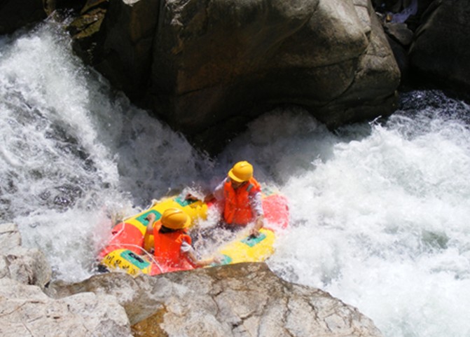 下險(xiǎn)灘、飛越激浪,有驚無險(xiǎn);過深潭、追波逐浪,聽鳥觀魚。身臨其境既可領(lǐng)略旖旎 的自然風(fēng)光,又可擁抱大自然的無限樂趣。山在霧中,人在畫中,恰似一幅情趣盎然的精品畫。在激流的撞擊下,橡皮艇如離弦之箭,向前沖刺。險(xiǎn)灘、礁石撲面而來,幾乎要把橡皮艇掀翻,卻有驚無險(xiǎn)。橡皮艇又義無反顧地駛?cè)肫骄彽乃吨新龡l斯理地蕩漾。心靈深處得到一次酣暢淋漓的釋放。