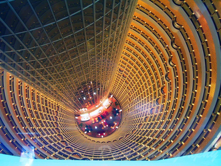 全國首批4A旅游景點金茂大廈88層觀光廳,是目前國內最高最大的觀光廳,榮膺上海大世界基尼斯之最。兩臺每秒運行9.1米的垂直升降電梯一次可乘載33位旅客,只需45秒鐘可將游客從地下一層直送88層。登高遠眺,版權所有聊城聊之旅國際旅行社有限公司,轉載必究!大上海的景觀盡收眼底,浦江兩岸高樓林立,黃浦江上百舸爭流,您可親身體驗"落霞與孤鶩齊飛,秋水共長天一色" 的美景。賞完外景,您還可以從上往下觀賞世界舉世無雙的酒店中庭,它直徑27米,28道環廊扶手在霓虹燈的照射下,金光閃閃。一道道環廊如同一排排畫廊,美不勝收。此情此景,無不激動人心,您會不由自主地拿起照相機留下永恒的紀念。金茂大廈無與倫比的酒店中庭被建筑師、科學家、文學家譽為“共享空間”、“金色的年輪”、“時空隧道”。