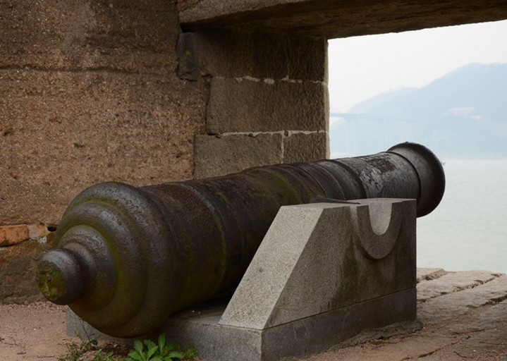崖門古炮臺位于新會崖門出海水道東岸的古井鎮官沖村,最早設置于清康熙五十七年(1718年),并形成雛形,后于清嘉慶十四年(1809年)正式設立興建。崖門古炮臺雄踞新會崖山,倚山面海,緊緊扼守著珠江八大出海口之一——崖門通往南海的進出水道。