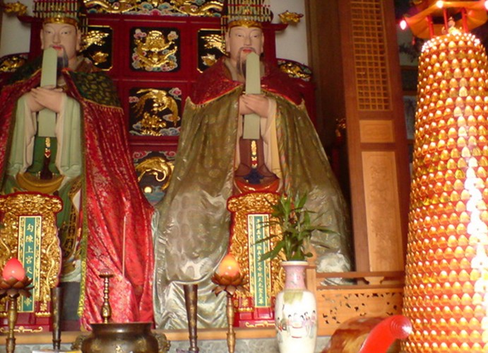 遠(yuǎn)望這座仿古建筑群,流光溢彩,氣勢(shì)非凡。門(mén)前有6000多平方米的停車(chē)場(chǎng),室外的地面砌花崗巖石,綠樹(shù)紅花點(diǎn)綴其間。版權(quán)所有山東聊城聊之旅國(guó)際旅行社有限公司,轉(zhuǎn)載必究!進(jìn)入山門(mén)后,兩邊分別是鐘樓和鼓樓,中間有一座漢白玉石雕砌的會(huì)仙橋。各建筑物的梁柱和走廊間繪制了許多花鳥(niǎo)、山水、人物圖畫(huà),體現(xiàn)了濃厚的文化品味。宮觀(guān)內(nèi)各殿堂安坐的神像有靈官護(hù)法、玉皇大帝、三清道祖、呂洞賓仙師、黃大仙、斗姆、六十太歲、關(guān)圣帝君、北帝、李涵虛祖師、觀(guān)音大士、天后、龍母等九十多尊。神像雕塑,道骨清相,神態(tài)逼真,形象慈祥、威嚴(yán)、端莊。